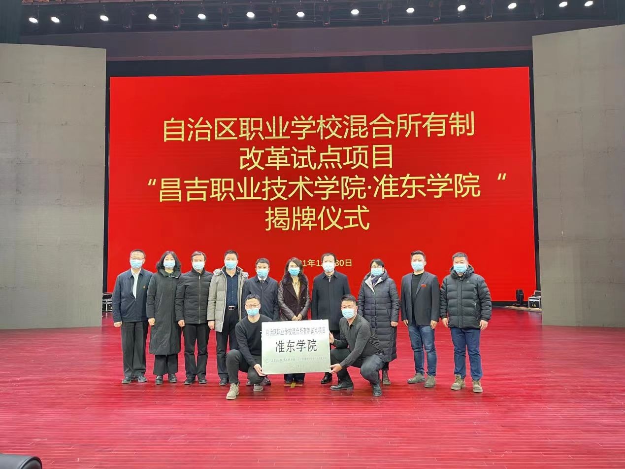 自治区职业院校混合所有制改革试点项目“🥕必威betway西汉姆·准东学院”揭牌仪式
