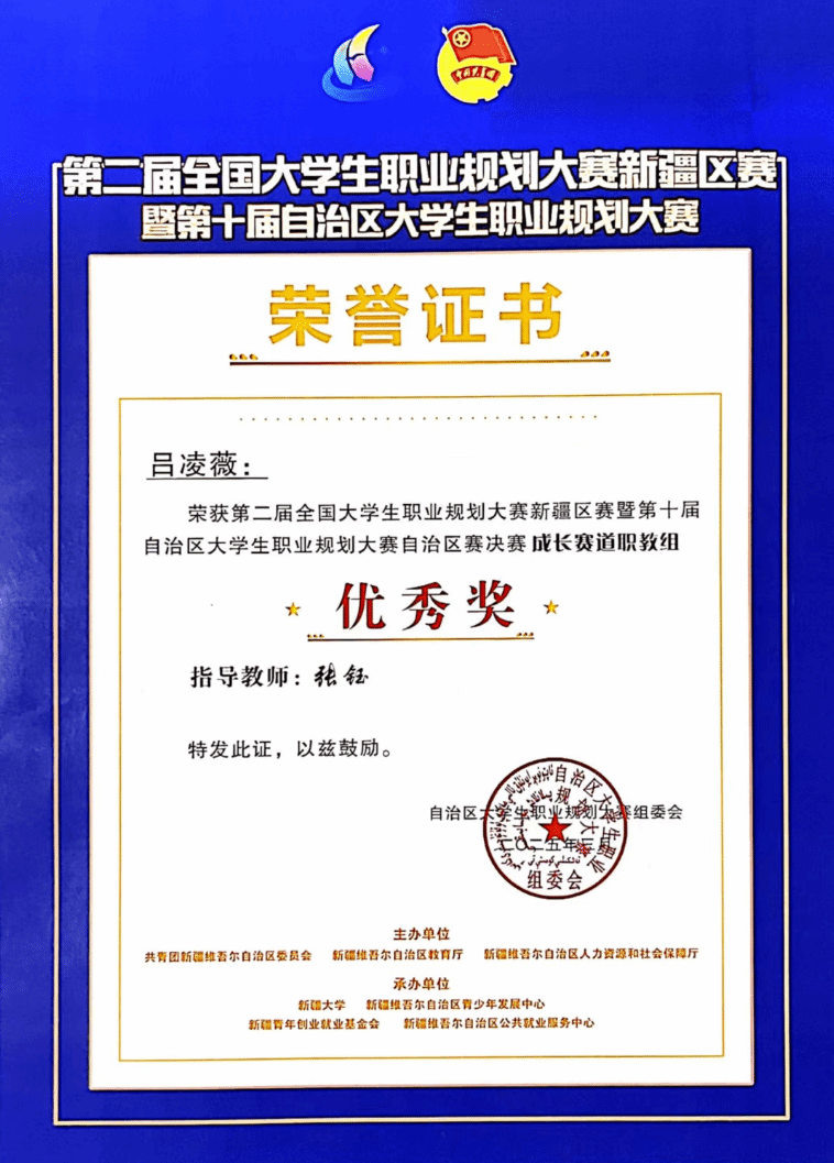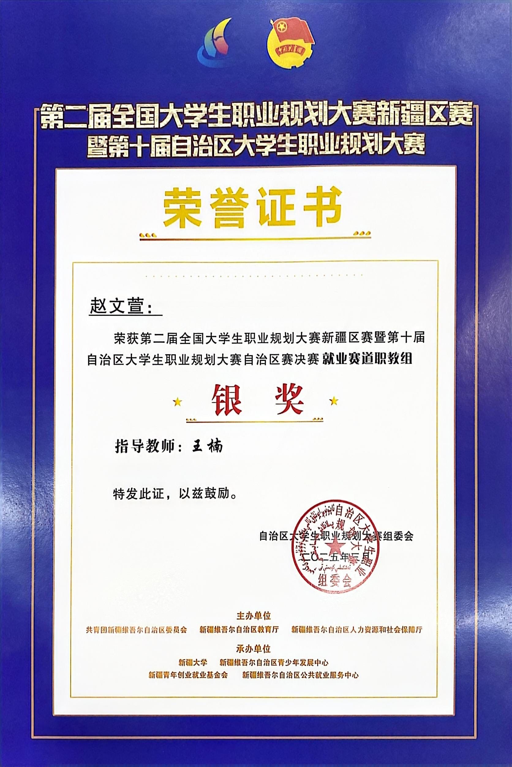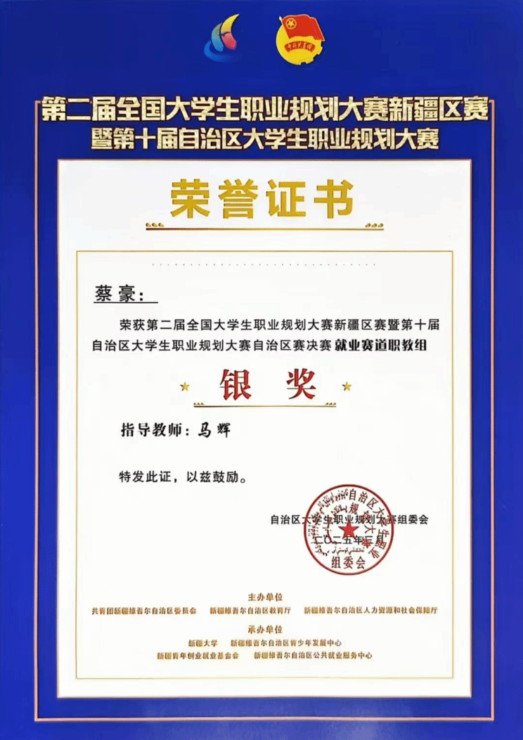 3月2日至7日,全国第二届大学生职业规划大赛新疆区赛暨第十届自治区大学生职业规划大赛自治区决赛在新疆大学博达校区圆满落幕。学院选派的六名参赛选手凭借出色表现,斩获佳绩,充分展示了学院在大学生职业规划教育领域的卓越成果。